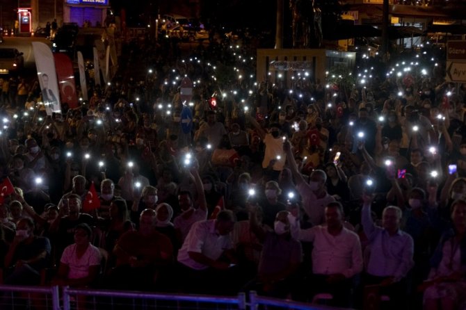 Onur Akın, konserde yaptığı konuşmada, "Mersin'in kalbi gerçekten sevgiden, barıştan, dostluktan, demokrasiden, laiklikten, adaletten, Cumhuriyetten, Mustafa Kemal Atatürk'ten, aydınlıktan, eşitlikten yana. Beni bu güzel insanlarla buluşturan Mersin Büyükşehir Belediyesine ve benim sevgili ağabeyim, dostum Vahap Seçer'e, belediye bakanımıza çok teşekkür ediyorum. Halkımızla zafer duygusunu, Cumhuriyeti gerçekten hissettik, duyumsadık. Bize bu ülkeyi yeniden vatan yapan başta Gazi Mustafa Kemal Atatürk'ü, bütün şehitlerimizi, gazilerimizi, isimsiz kahramanlarımızın hepsini saygı ve minnetle andık" dedi.