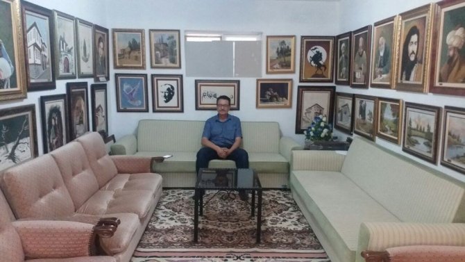 Denizli’nin Tavas ilçesinde yaşayan 62 yaşındaki emekli Fen Bilgisi öğretmeni Hüseyin Çoban, ders kitabında yer alan konusu gereği taş biriktirerek öğrencilere gösteriyordu. Bir süre sonra bu taşları toplamaya başladı. Daha sonra renkli taşlarla resim yapabileceğini öğrenen Çoban, 19 yıldır toz haline getirdiği taşları birer sanat eserine dönüştürüyor. Yurtdışından ve yurdun dört bir tarafından topladığı renkli taşları önce havanda ezerek toz haline getiriyor. Elekte elenen kumları iğne tığ ucuyla tuvale yapıştırarak birbirinden özel tablolara dönüştürüyor. Tek tek toz haline gelen renkli taşlar emekli öğretmenin duvarlarını süslüyor.