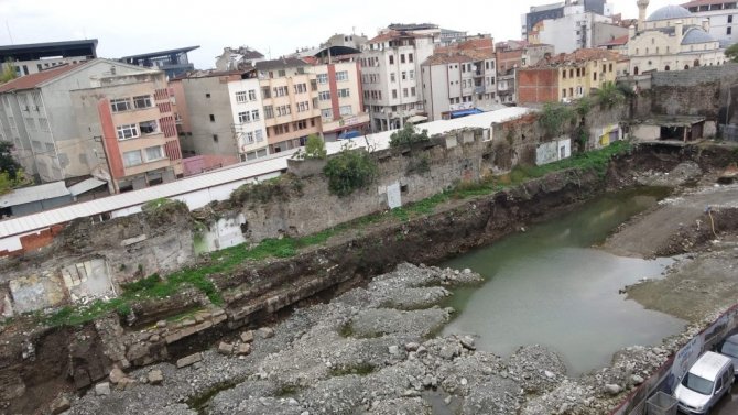 Trabzon'un Ortahisar ilçesi Tabakhane Vadisi'nde pazaryeri ve otopark projeleri planlanan surun doğusu ile Kuzgundere Vadisi'nde yapılan kazı çalışmasında...