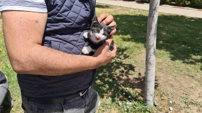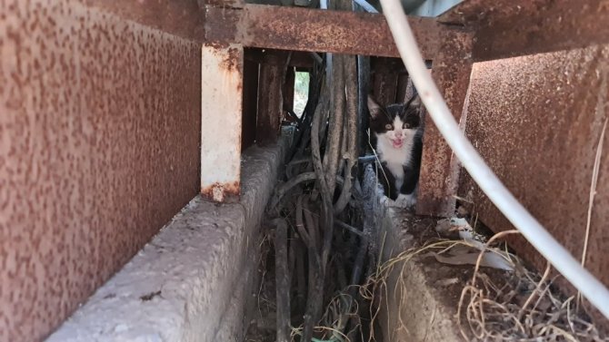 Öte yandan, Karabük Üniversitesi TOBB Teknik Bilimler Meslek Yüksekokulunun tuvaletinin tavanındaki havalandırma boşluğunda mahsur kalan bir başka yavru kediyi de uzun uğraş sonucu kurtardı.