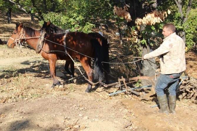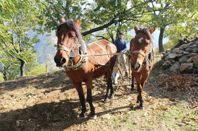 Eskiden yaylalarda üretim yapan çiftçilerin traktöre hasret olduğunu ancak son yıllarda incir ve kestanenin para etmesi ile birlikte artık herkesin normal bir traktörden öte 4 çeker sıfır traktör aldığını belirten Ersoy Karaca, “Arazi yapısının yanı sıra saban çekerken ağacın köklerini de kırdığı için çift sürerken atları tercih etmeye başladık. Traktör aşırı güçlü olduğu için sabana kök geçince koparıp gidiyor. At ve öküz ise kök geçtiğinde yükü ağırlaştığı için işaret veriyor ve ağaçların kökleri zarar görmeden toprağı sürüyoruz” dedi.