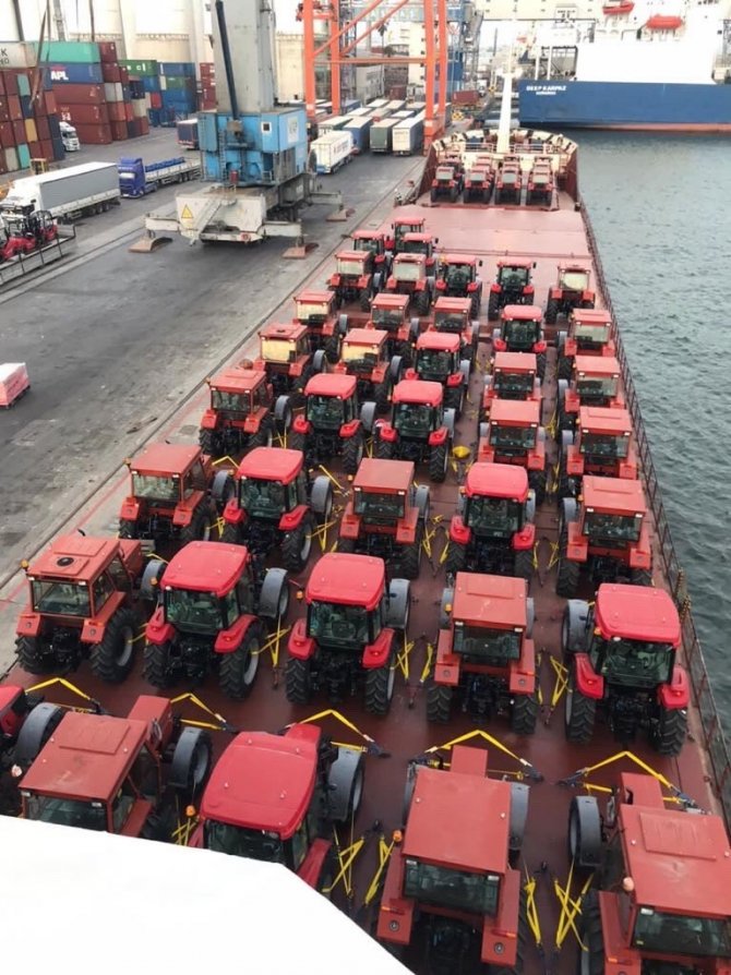 Türkiye'nin önde gelen traktör üreticilerinden TÜMOSAN'ın 50 traktörü Gine'de hayata geçirilecek Büyük Tarım Projesi için Conakry Limanı'na doğru...