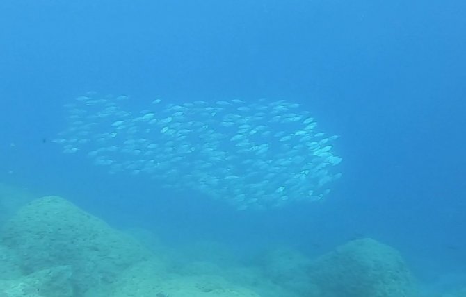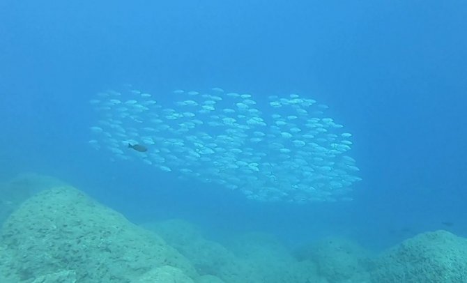 Akdeniz Üniversitesi Sualtı Topluluğu geçtiğimiz günlerde Kemer ilçesi açıklarında dalış organizasyonu yaptı. Organizasyona akademik danışman olarak çağırılan Akdeniz Üniversitesi Su Ürünleri Fakültesi Öğretim Üyesi Prof. Dr. Mehmet Gökoğlu, öğrencilerle birlikte 15 metre derinlikte dalış gerçekleştirdi. Bu sırada büyük akya balıklarının tral sürüsünü kovaladığını gören dalış topluluğu sualtı kamerasıyla kayda girmeye başladı.