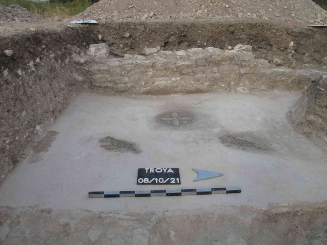 Troya Kazıları'nın 150'nci yıl dönümünde yapılan çalışmalar kapsamında "Aşağı Kent" olarak belirtilen bölgede zemin mozaiği bulundu. Buluntunun iyi korunduğuna dikkat çeken Troya Kazı Başkanı Prof. Dr. Rüstem Aslan, "Neredeyse bin 500 yıllık çok kaliteli bir mozaik yapısı bulundu. Bunun öncesinde de bu tip buluntular vardı fakat bu kadar kentin dışında ve sınırında bu kaliteli yapıların bulunması o dönemdeki Troya'nın önemini bizlere bir kez daha gösterdi" dedi.