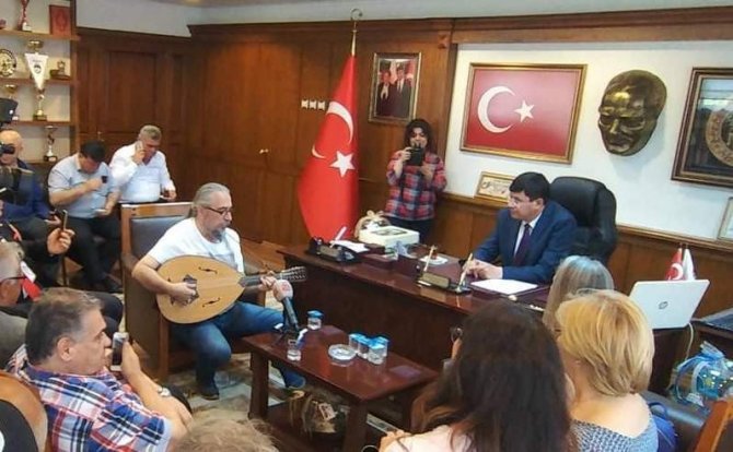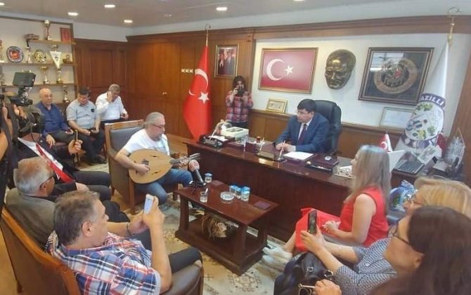 Aydın’ın Nazilli İlçesinde 31 Mart yerel seçimlerinde belediye başkanı seçilen Kürşat Engin Özcan’a yoğun bir biçimde süren tebrik ziyaretleri kapsamında bu kez ünlü TRT ses sanatçısı Tango ustası Ahmet Kadri Rizeli konuk oldu. Başkan Özcan’ı makamında tebrik eden ünlü sanatçı, Udu ile söylediği iki esere Özcan ve beraberindekiler de eşlik etti.