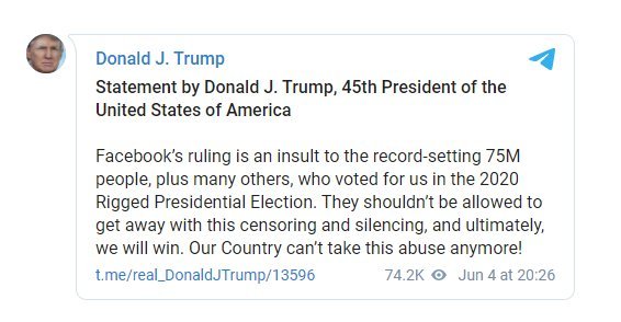 Trump: "Facebook’un kararı, 2020’deki hileli başkanlık seçimlerinde bize oy verenlere hakaret"