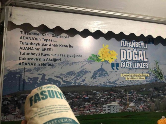 Belediye Başkanı Remzi Ergü, Adana'nın Toros eteklerinde yer alan 3 bin yıllık Hitit döneminden kalma Tarihi Şar Antik kenti ile ilçenin tarihi ve doğal güzelliklerinin yanı sıra rakım, iklim ve toprak şartlarının etkisiyle ürünlerinde ciddi şekilde lezzeti ile fark oluşturduğunu söyledi. Tufanbeyli fasulyesi ve bakliyat ürünlerinin bu anlamda öne çıktığına dikkat çeken Ergü, "Hitit döneminde önemli bir merkez olan Tarihi Şar Antik Kenti ilçemizde ziyaretçilere ev sahipliği yaparken lezzetin başkenti Adana'mız da fasulyemiz, nohut, barbunya ürünlerimiz ile standımıza herkesi bekliyoruz. Coğrafya lezzettir ve bu Adana'mızın her bir köşesinden bu lezzetleri dünyaya tanıtmak için çalışıyoruz "dedi.
