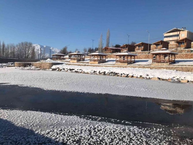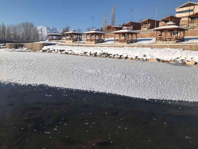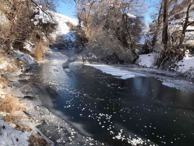 Tufanbeyli’de Göksu Irmağı buz tuttu