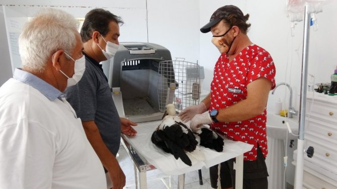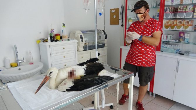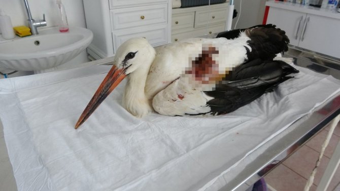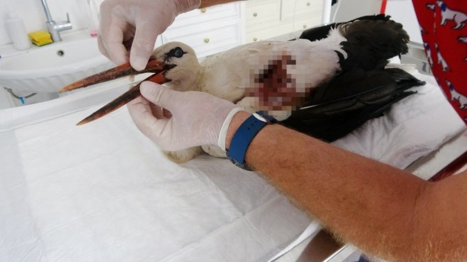 Tüfekten çıkan saçmalarla yaralanan dişi leylek tedavi altına alındı