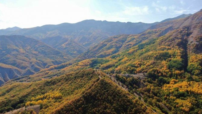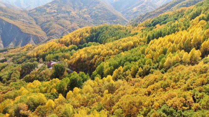 Türkiye'de sonbahar mevsiminin en iyi yaşandığı yerlerden olan Tunceli'nin Pülümür ilçesi ormanları, bu sene de renklere boyandı. Ormanlar, içerisinde bulunan meşe, ceviz, kavak, badem, karaağaç, çam ve yemiş ağaçlarının farklı tonlardaki