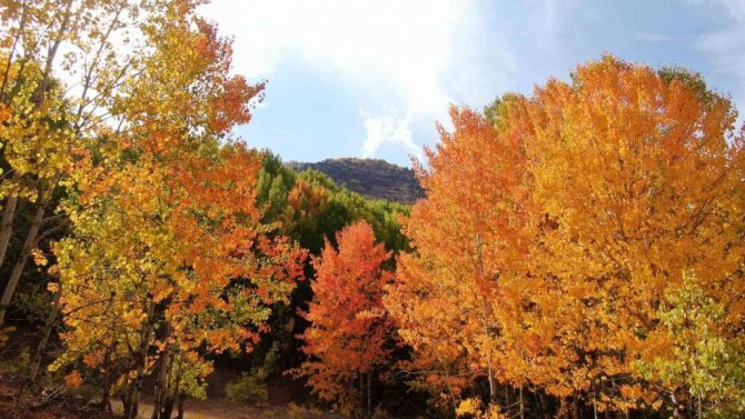 Bölgede sonbaharda renk cümbüşünün yaşandığını kaydeden Haydar Gül de, "Bölgemiz sonbahar aylarında rengarenk oluyor. Köyün doğal güzelliği daha da farklılaşıyor. Ben tüm ülkemizin böyle doğal güzelliği olsun istiyorum. İnsanlarımız bulunduğu bölgelerde gezsinler. Son aylarda buralara ve bölgeye oldukça yoğun bir ilgi var. Her renkten ağaç var. Adeta tablo şeklinde bir doğa güzelliği var. Geçen yıl ben İskenderun Belediyesine yaklaşık 250 kilogram meşe palamudu götürdüm. Doğacıyım diyen arkadaşlar da gelsinler yine meşe palamudu toplayıp Türkiye'nin yangın bölgelerine göndersinler. Orada ağaçların yeşermesini sağlasınlar. Bizim doğaya böyle bir borcumuz var" diye konuştu.