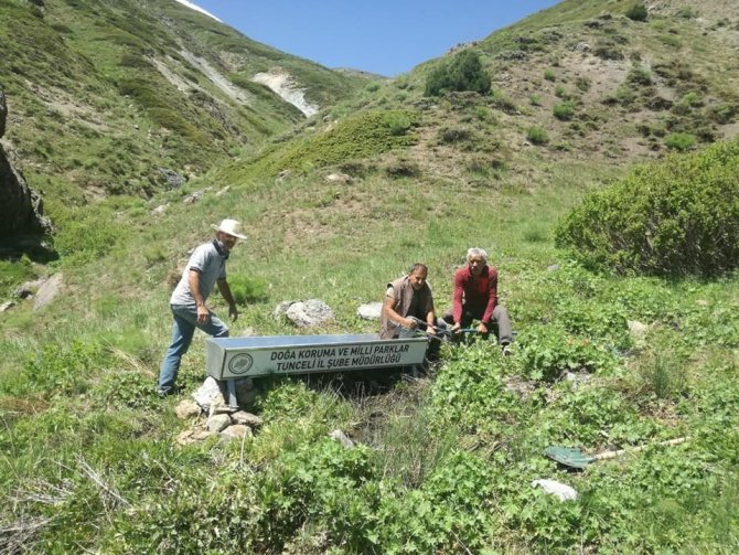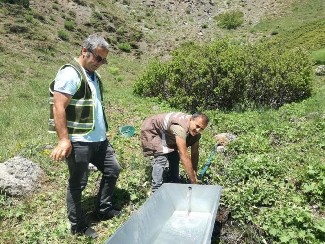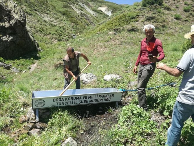 Yaban hayatının yoğun olduğu Tunceli'de Doğa Koruma ve Milli Parklar Şubesi'ne (DKMP) bağlı ekipler "Su Kaynakları" projesi kapsamında çalışmalarını yoğunlaştırdı. Daha öncede belirli noktalara su yalağı kuran ekipler, kent genelinde özellikle yaban keçilerinin uğrak noktalarına su yalakları yerleştirerek, su bağlantısını gerçekleştirdi. Ekiplerin Munzur Vadisi Milli Parkı sınırları içerisinde bulunan Sarıtaş mevkii ile Pülümür ilçesi kırsalında su yalağı kurulumu yaptığı aktarıldı.