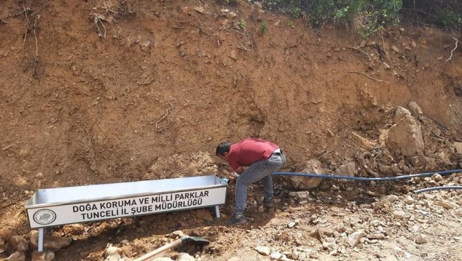 Tunceli'de sıcak havanın etkisini göstermesiyle birlikte çalışmasını yoğunlaştıran DKMP ekipleri yaban hayvanları için belirli noktalara su yalağı kurdu.