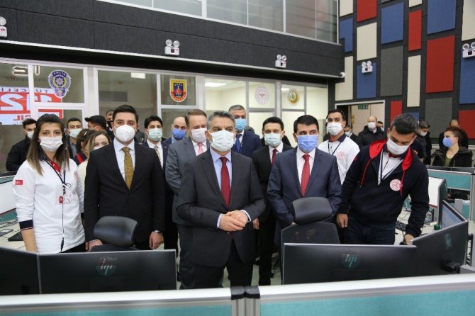 Tüm acil çağrı birimlerinin millete hizmet için birleştiğini belirten Vali Mehmet Ali Özkan, "Cumhurbaşkanımızın talimatları, İçişleri bakanlığımızın himayeleriyle ve İl Özel İdaresi Genel Müdürlüğümüz ile diğer bakanlıklarımızın koordinasyonunda yürütülen ülkemiz genelindeki acil çağrıları "112" çatısı altında toplama çalışmaları ilimizde de yürütülmektedir, neredeyse sonuna geldik. Artık ilimizde 6 kurumu tek bir çatı altında 112 numarası altında topluyoruz. 155, 156, 110 ve AFAD gibi çağrılarımız tek bir çatıda topladık. Artık vatandaşımız kolay bir şekilde hizmet görecek. İnşallah ilimiz ve ülkemiz için hayırlı olur. Vatandaşımıza teşekkür ediyorum en doğru zamanda en doğru şekilde sadece gerektiğinde 112'ye başvuran illerden birisiyiz. Yanlış, oyalayıcı çağrı gibi konular çok şükür ilimiz açısından söz konusu değil" dedi.