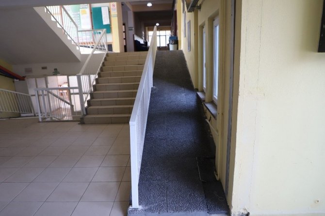 Turgutlu Belediyesi, Mesleki Eğitimi Merkezi’nin engelli rampası ihtiyacını kısa sürede tamamlayarak öğrencilerin, velilerin ve öğretmenlerin hizmetine sundu. Merkezin hem girişine hem de 4 katına yapılan rampa beğeni topladı.