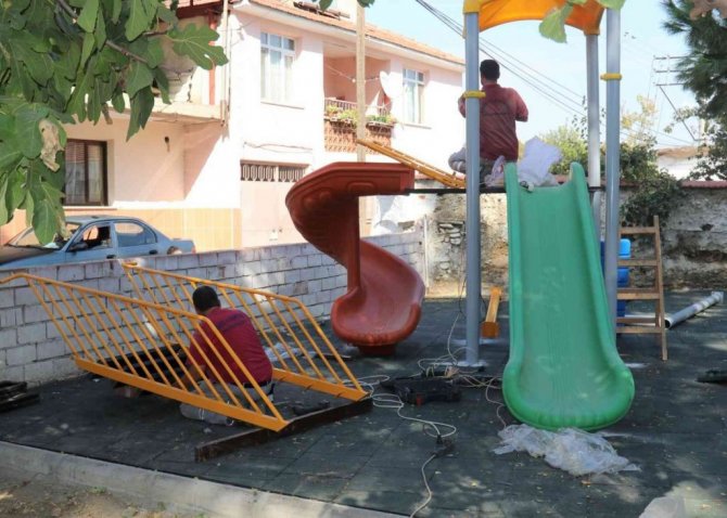 Turgutlu Belediyesi Fen İşleri ile Park ve Bahçeler Müdürlüğü ekipleri ilçede sürdürdüğü asfalt sathi, yeni çocuk oyun grubu, boyama, tamirat, bakım...