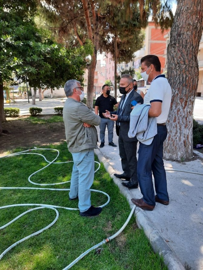 Manisa Büyükşehir Belediyesi Genel Sekreter Yardımcısı Uğur Başkal, Büyükşehir Belediyesinin haşereyle mücadele çalışmalarını yerinde incelemek...