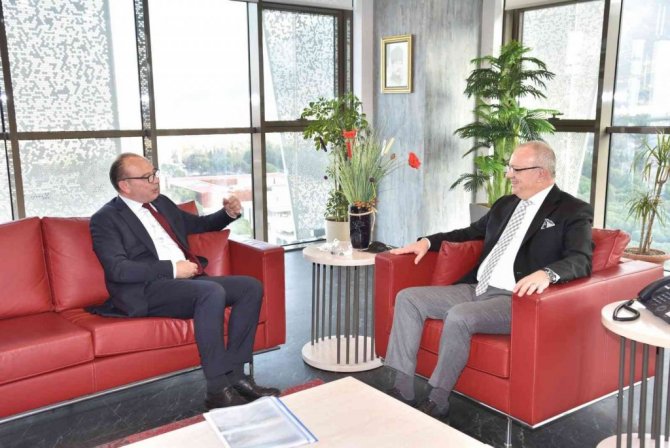 Manisa Büyükşehir Belediye Başkanı Cengiz Ergün, Turgutlu Belediye Başkanı Çetin Akın'ı makamında ağırladı. Yapılan nezaket ziyaretinde Turgutlu yapılacak yatırımlar hakkında fikir alışverişinde bulunuldu.