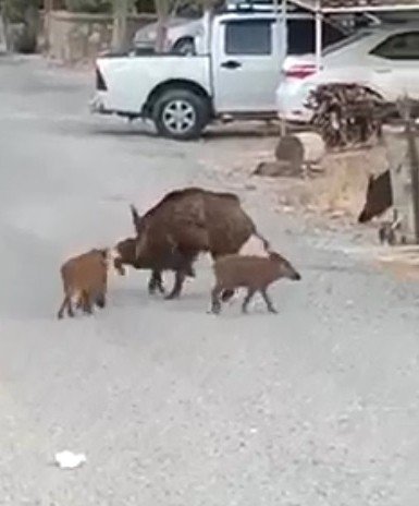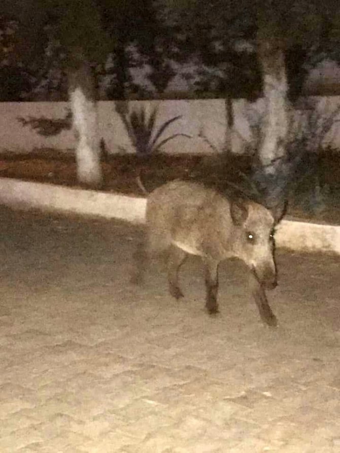 Turistik ilçedeki domuz sürüsü şaşırttı