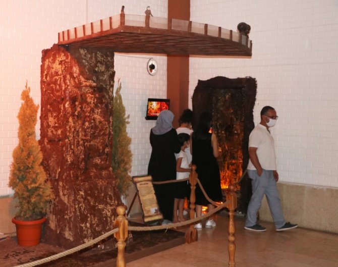 Çikolata Müzesi ile ilgili bilgiler veren Muharrem Kaba, müze için yaklaşık 5.5 ton çikolata kullanıldığını belirterek, "Burada görmüş olduğunuz eserler kiremitten zemine kadar çikolata ile yapılmıştır. Bu ebatlarda dünyada ilk defa yapılan eserlerdir" dedi.