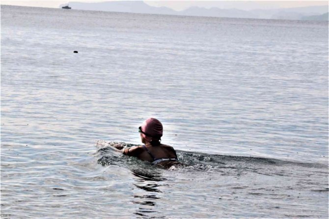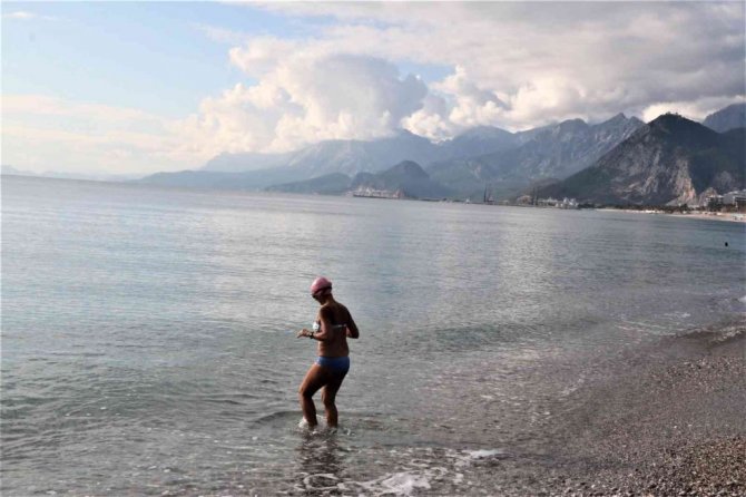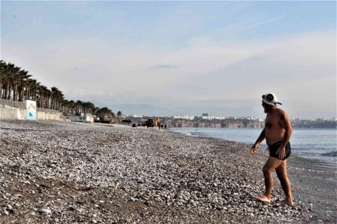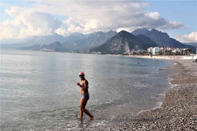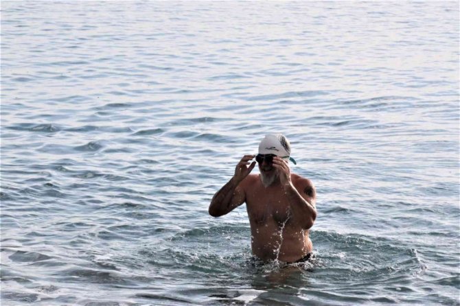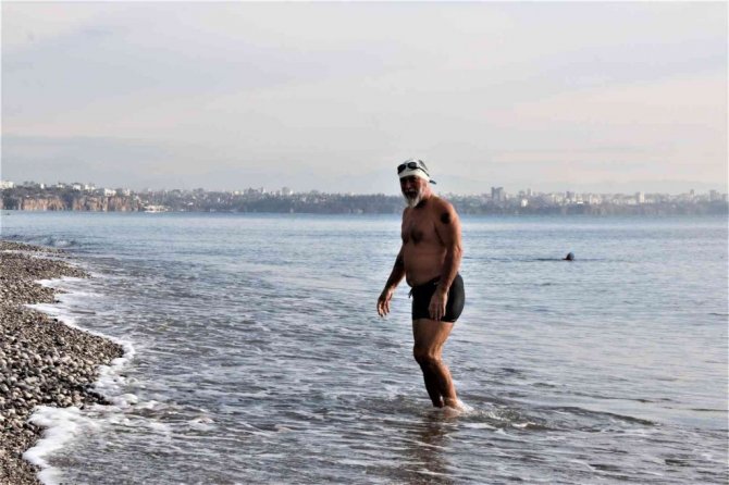 Konyaaltı'nda denize giren İbrahim Adalı, "Denizin imkanlarından faydalanıyoruz. Yaş ve kış yüzüyoruz. Sağlık için şart. Herkese tavsiye ederim. Vücudumuz alıştı. Mart'tan sonra soğuma başlıyor. Hemen hemen deniz suyu sıcaklığı dışarısı ile aynı. Yükseklere kar yağıyor, alçaklara yağmıyor. Zamanı gelince kayak yaparız inşallah" diye konuştu.