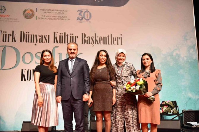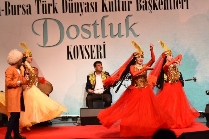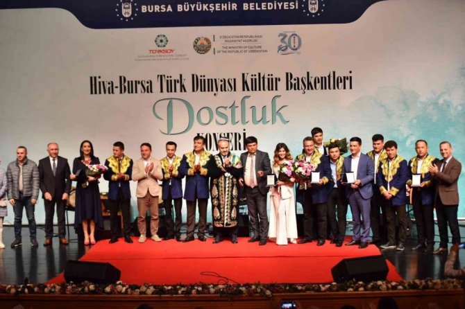 Bursa Büyükşehir Belediye Orkestrası Türk Halk Müziği Topluluğu ve Taşkent Devlet Filarmoni Dans ve Müzik Topluluğu'nun birlikte verdiği konserde Bursalılar unutulmaz bir gece yaşadı. Uluslararası Türk Kültürü Teşkilatı TÜRKSOY tarafından 2022 Türk Dünyası Kültür Başkenti seçilen Bursa, Özbek, Kazak ve Türk sanatçıları Hiva-Bursa Türk Dünyası Kültür Başkentleri Dostluk Konseri'yle aynı sahnede buluşturdu. Bursa Büyükşehir Belediyesi'nin ev sahipliğinde gerçekleşen etkinliğe, Büyükşehir Belediyesi Başkanı Alinur Aktaş, Bursa Milletvekili Atilla Ödünç, TÜRKSOY Daire Başkanı Sancar Mülazımoğlu, Özbekistan Kültür Bakanlığı Temsilcisi Khamroz Dekhanov, Taşkent İl Kültür Müdürü Akhror Mirzaev, Bursa İl Kültür Turizm Müdürü Dr. Kamil Özer ve çok sayıda müziksever katıldı. Konserin ilk bölümünde Bursa Büyükşehir Belediyesi Türk Halk Müziği Topluluğu, solist Nilüfer Göl'ün söylediği şarkılar ve halk dansları sanatçılarının gösterileri izleyenlerden büyük alkış aldı. İkinci bölüm öncesinde sahne alan Kazak sanatçı Lara Rysbay şarkılarını "Kazakistan" bayrağı ile söyledi. Osmanlı'nın ilk başkenti olan Bursa'da olmaktan dolayı büyük heyecan duyduğunu ifade eden genç şarkıcı, aynı zamanda bugün doğum günü olduğunu söyledi. Şarkıcı doğum gününü Bursa'da kutluyor olmasının kendisi için büyük mutluluk olduğunu söyledi. Konserin ikinci bölümünde Taşkent Filarmoni Dans ve Müzik Topluluğu sanatçıları önce yerel şarkılarını söyledi, ardından dillere pelesenk olmuş Türkçe şarkıların ezgilerini yerel sazlarıyla çalarak müzikseverlerin büyük beğenisini topladı. Sahne şovları ve danslarıyla izleyicilere müzik ziyafeti yaşatan topluluk coşkuyla alkışlandı.