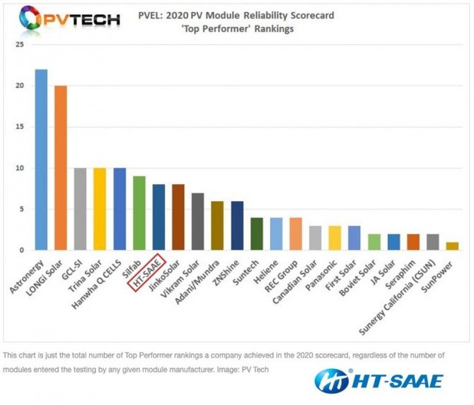 Güneş paneli üreticisi HT-SAAE, PVEL 2020 PV Güvenirliği Değerlendirmesi’nde ‘En İyi Performans Gösteren Üreticiler’ listesine seçildi.