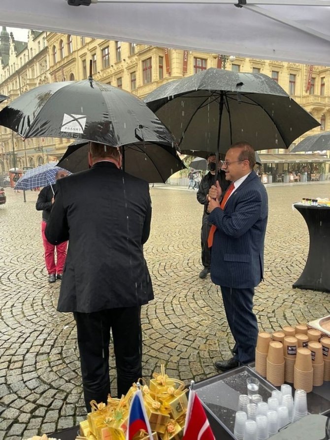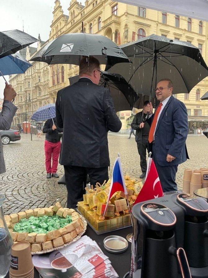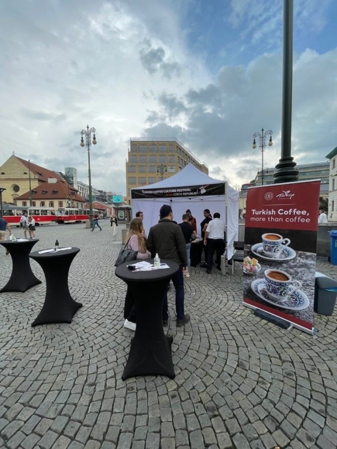 Çekya'nın başkenti Prag'ın en ünlü meydanlarından Namesti Republiky'de dağıtılan Türk kahvesi Çekya halkından da büyük ilgi gördü.