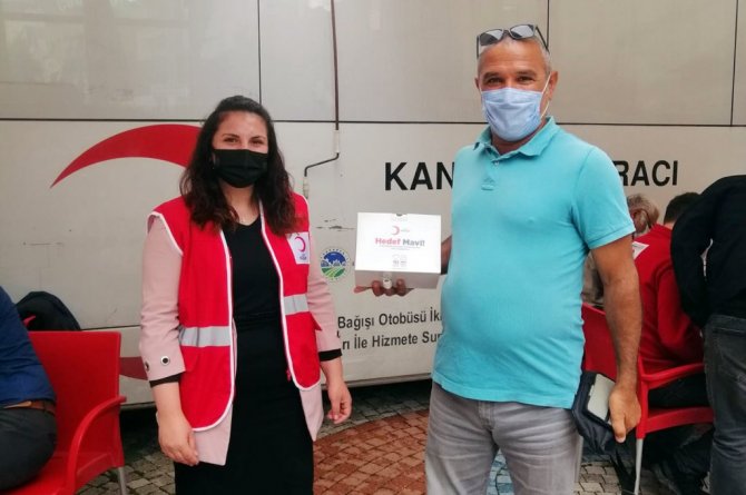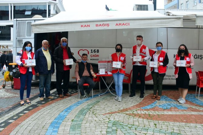 Sakarya'nın Karasu ilçesinde hizmet veren kan bağışı aracında bağışçılara Türk Kızılay Karasu Koordinatörü Adem Ekşi ve gönüllüler, sağlık kiti ve Türk kahvesi hediye etti.