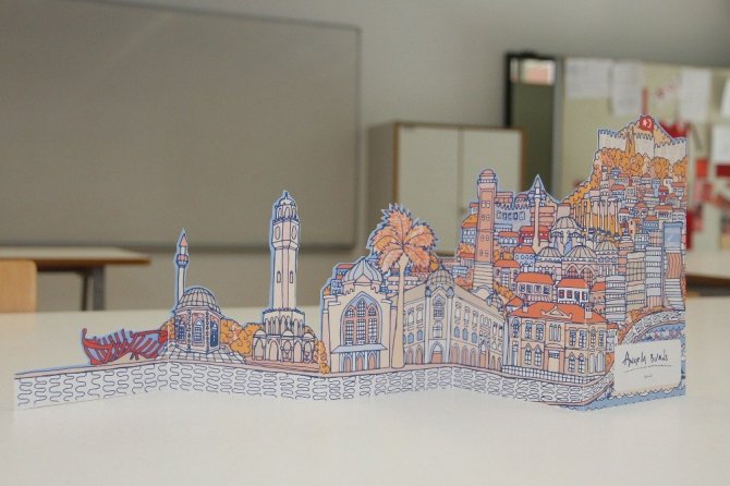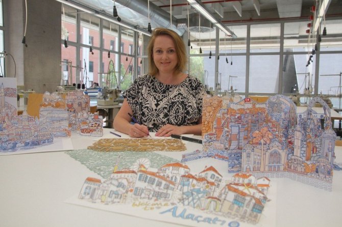 Türkiye’de yaşayan bir yabancı gözüyle ülkenin kültürünü, tarihi ve coğrafi yerleri illüstrasyon sanatıyla birleştirdiğini aktaran İzmir Ekonomi Üniversitesi (İEÜ) Güzel Sanatlar ve Tasarım Fakültesi Moda ve Tekstil Tasarımı Bölümü Öğretim Görevlisi Angela Burns, “Türkiye’nin tekstil tarihinde önemli bir yeri olan Sümerbank fabrikaları beni çok etkiledi. İllüstrasyonlarla Sümerbank’ın öyküsünü anlatmaya çalıştım. Pamuk üretimi, Nazilli Sümerbank Fabrikası, basma işletmelerini, kumaşlarını işledim. Bu çalışmamın yanı sıra İzmir, Alaçatı, İstanbul, İstanbul Kapalı Çarşı, Kapodokya ve balonlar, Efes, Pamukkale, Hierapolis antik kentleri, mavi yolculuk, Türk kahvaltısı, ince belli çay, Türk kahvesini üç boyutlu halde ürettim. Hepsini illüstrosyanla birleştirdim” dedi.