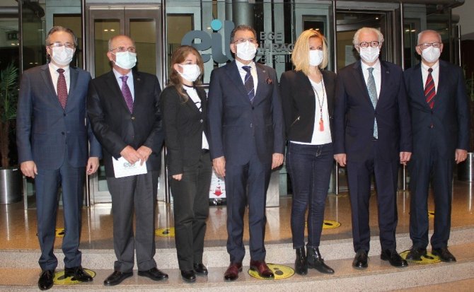 EİB Koordinatör Başkanı Jak Eskinazi, İzmir Ekonomi Üniversitesi Rektörü Prof. Dr. Murat Aşkar, EİB Koordinatör Başkan Yardımcısı Birol Celep, İEÜ Uygulamalı Yönetim Bilimleri Yüksekokulu Müdürü Dr. Betül Öztürk ve Gıda Birlikleri Başkanları, hibrit basın toplantısıyla projenin detaylarını paylaştı.