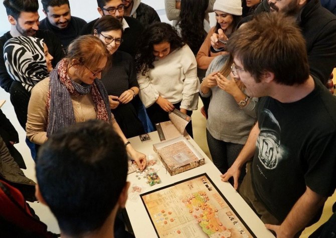 Bilgisayar oyunları öğrencileri sosyalleşmekten uzaklaştırdığı için bu tarz eğitimlerde kutu oyunlarını tercih ettiklerini dile getiren Yrd. Doç. Dr. Diğdem Soyaltın de, “Kutu oyunu aslında şöyle bir imkan sunuyor bize; kutu oyunu ailece, arkadaşlarla oynanabilecek bir oyun. Şansa dayalı değil, akılla temellendirilmiş bir oyun. Biz bu nedenle kutu oyununu tercih ettik. Bu oyun sayesinde tartışma, uygulama kısmını hayata geçirmiş olduk. Bu oyunla öğrenciler edilgen bir dinleyici değil, eğitimin bir parçası haline geliyorlar. Bu ders öğrencilerin yoğun katılımıyla gayet başarılı sonuç verdi, kutu oyunlarıyla eğitimi farklı derslerde de uygulayabiliriz” dedi.