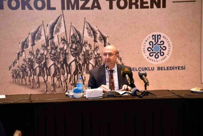 Türk tarihinin kahramanlıklarla dolu olduğuna vurgu yapan Selçuklu Belediye Başkanı Ahmet Pekyatırmacı, "Türkler, Avrasya bozkırlarında çok sayıda devlet kurmuş, bu devletler zamanla kurumsallaşarak, Büyük Selçuklu ve Anadolu Selçuklu gibi devletlerle hakimiyet kurdukları topraklarda medeniyetin temsilcileri olmuştur. Türkiye Cumhuriyeti ise günümüzde, geçmişin yolunda geleceğe dönük yüzüyle bu medeniyetin son temsilcisidir. Türk tarihi; toplumu, milleti ve devletini yükseltmek için mücadele eden kahramanlarla doludur. İslam öncesi ve sonrası dönemlerde Türkler 16 büyük devlet kumuş, sayısız lider, ilim adamı, bilge şahsiyetler yetiştirmiş ve dünyaya yön veren model oluşturacak uygulamalarla tarih yazmıştır. Şanlı tarihimizin geçmişini geleceğe taşımak, neslimizin aydınlık yarınlarını medeniyetimizin kodlarıyla inşa etmek adına belediyemiz tarafından önemli projeler gerçekleştirilmiştir. Tüm bu çalışmaları bugün protokolünü imzalayacağımız "Türklerin Mirası" projesi ile taçlandırmak istiyoruz. T.C. Cumhurbaşkanlığı himayelerinde yürütülen "Türklerin Mirası Projesi" Türkiye Cumhuriyeti tarihinin "Türkler" konulu en büyük kültür projesidir. Bu proje 18 sekiz bölüm belgesel ve 17 ciltlik külliyattan oluşmaktadır. Selçuklu Belediyesi olarak, bu projenin ilk etabı olan 4 bölüm belgesel ve 4 ciltten oluşan yayını bir yıl içinde gerçekleştireceğiz" dedi.