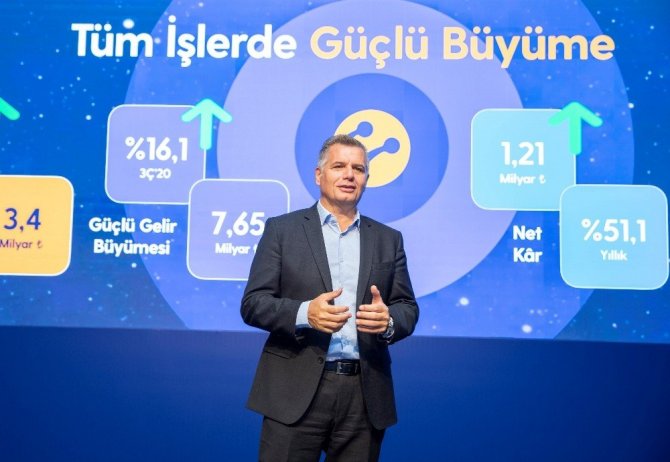 Turkcell’in müşterilerin ihtiyaçlarına cevap veren ve sektöre öncülük eden çözümleri sayesinde geçen yılın aynı dönemine göre 1,1 milyon net faturalı müşteri kazandıklarını belirten Turkcell Genel Müdürü Murat Erkan, “Dijital dönüşümün ivme kazandığı 3. çeyrekte Turkcell olarak bütün metriklerde güçlü bir büyüme gösterdik. Bu dönemde hem altyapımız hem de yenilikçi dijital servislerimiz ile müşterilerimizin yanında olduk. Sadece bu çeyrekte 317 bin faturalı müşteri daha Turkcell dedi. Böylece yılın başından beri 1,1 milyon net faturalı müşteri kazanmış olduk. Milletimizin Turkcell’i tercih etmesi en büyük motivasyon kaynağımız. Yeni normale geçiş dönemi olan bu süreçte dijital dönüşüme uyum sağlayan iş modelimiz ve dijital servislerimiz sayesinde beklentilerin üzerinde sonuçlara imza attık. Turkcell tarihinin en başarılı 3. çeyrek sonuçlarından birini aldık ve yıl sonu için belirlediğimiz hedeflerimizi yukarı yönde güncelledik” şeklinde konuştu.