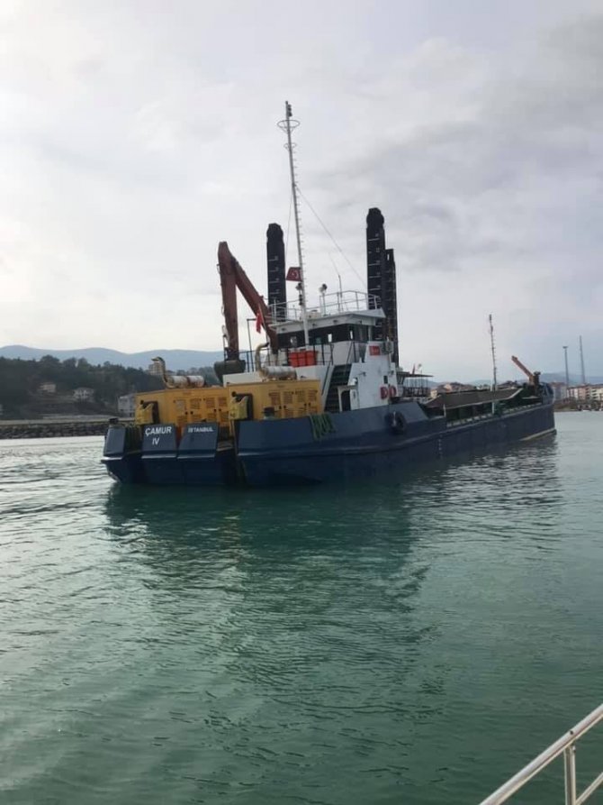 Türkeli İlçe Limanı'nda oluşan milin limandan temizlenmesi ve gemilerin rahat bir şekilde limana yanaşmaları için limana gelen Ulaştırma ve Altyapı Bakanlığına bağlı deniz dibi tarama gemisi, limanın kumdan tahliyesi için çalışmalara başladı.