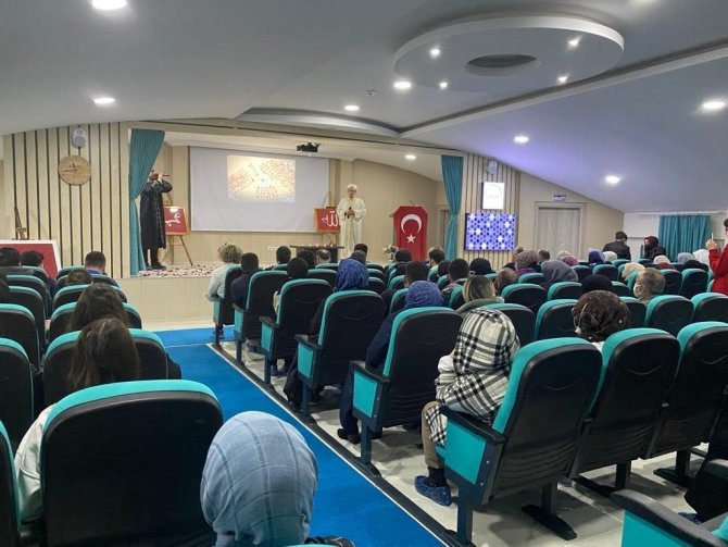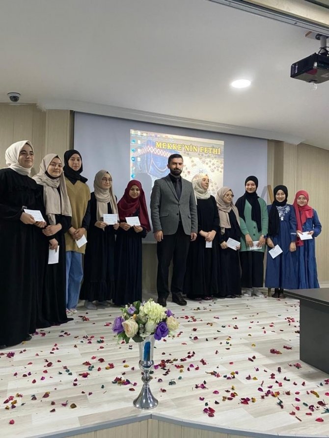 Türkeli Yatılı Kız Hafızlık Kur'an Kursu Toplantı Salonunda düzenlenen programda, Mekke'nin Fethi'ni anlatan sinevizyon gösterimi izlendikten sonra, öğrenciler tarafından çeşitli ilahiler seslendirildi.