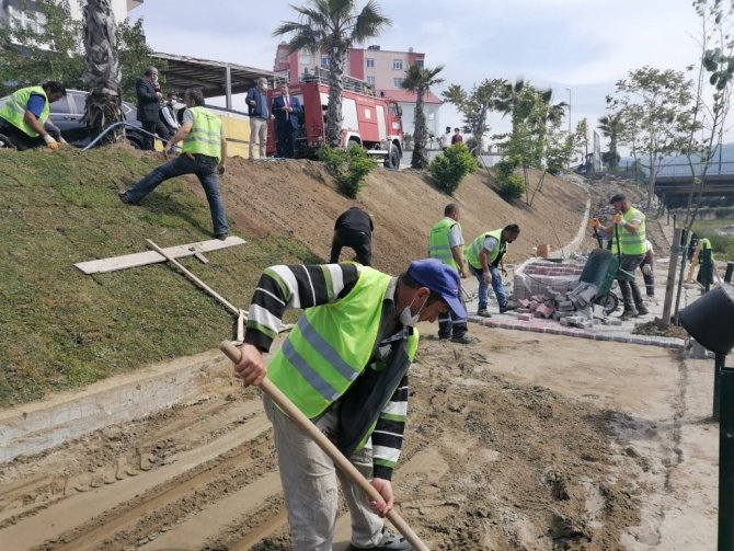 İlçenin Gemiyanı Mahallesi'nde geçen nisan ayında ibadete açılan Gemiyanı Mahalle Camisi'nin çevre düzenlemeleri ile birlikte yine söz konusu bölgede yeni yürüyüş ve mesire alanları oluşturulması için yapılan projenin ardından çalışmalara başlandı.