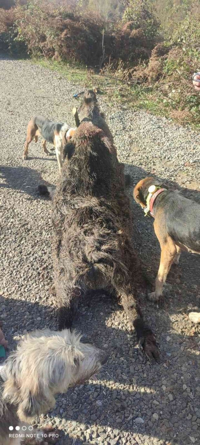 Sinop Türkelili avcılar, 200 kilogramın üzerinde dev bir domuzu avladı.