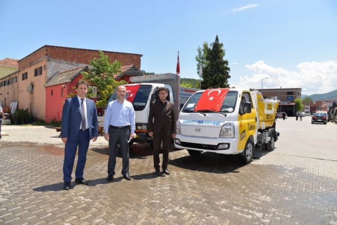 Belediyenin öz kaynakları ile temin edilen, ilçenin çöp toplayıcılığı ile lojistik faaliyetlerinin yürütülmesinde önemli ihtiyaçları karşılayacak 1 adet çöp taksi ile 1 adet kamyonet için tören düzenlendi. Belediye İtfaiye Amirliği önünde düzenlenen törene, Belediye Başkanı Veysel Şahin, AK Parti İlçe Başkanı Turan Yıldırım, belediye başkan yardımcıları, personeller ve vatandaşlar katıldı.