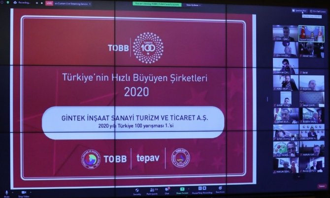 'TOBB Türkiye 100 Ödül Töreni'nde başvuranlar arasında, Türkiye'nin 2016-2018 dönemindeki satış geliri artış hızı sıralamasına göre en hızlı büyüyen ilk 100 şirketi kamuoyuna ilan edildi. Korona virüs tedbirleri kapsamında Telekonferans yöntemiyle geçekleştirilen törenin açılış konuşmasını yapan Ticaret Bakanı Ruhsar Pekcan, "Türkiye Odalar ve Borsalar Birliği ile TEPAV'ın çalışmaları sonucunda, büyüme performansları ile dikkat çeken şirketlerimizin ödüllendirildiği bu etkinliğin; şirketlerimizin ulusal ve uluslararası kamuoyunda daha da görünür hale gelmelerine katkı sağlaması bakımından, oldukça değerli bulduğumu ifade etmek isterim" şeklinde konuşurken, TOBB Başkanı Rifat Hisarcıklıoğlu ise "Türkiye 100 şirketleri herkesin bildiği işleri, çok farklı bir anlayışla yapıyorlar. Dijital teknolojiyi çok iyi kullanıyorlar. Çalışanların eğitimine ayırdığı kaynağı masraf olarak görmüyor, buna büyük önem veriyorlar" açıklamasında bulundu.
