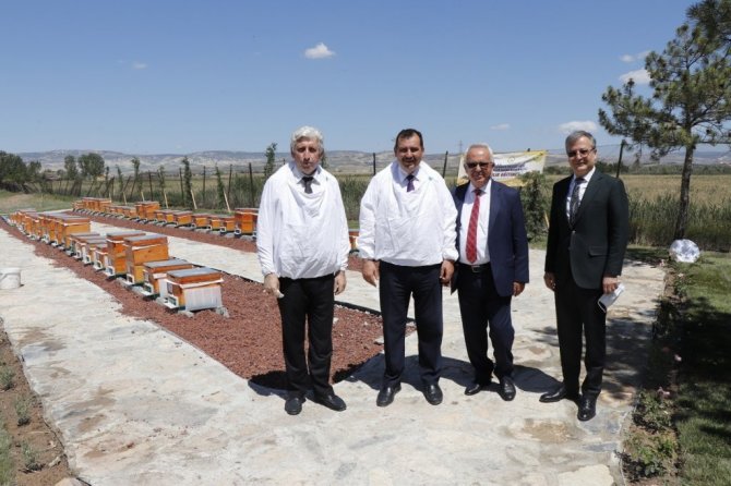 Yapılan törenin ardından katılımcılar, Uygulama Çiftliği içinde yer alan arılık ünitesini gezdi.
