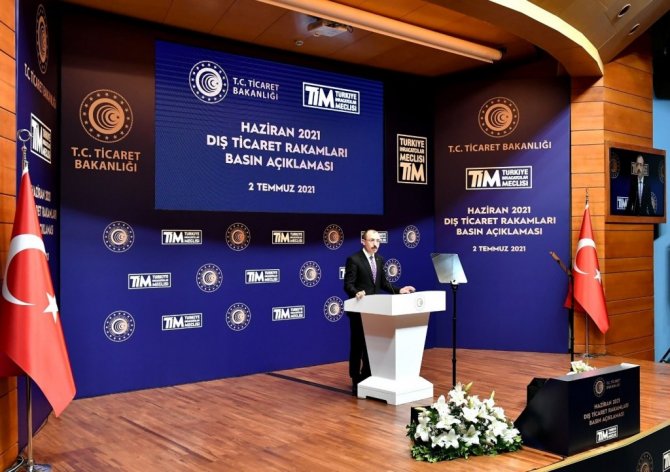 Ticaret Bakanı Mehmet Muş, Bakanlık binasında haziran ayı dış ticaret rakamlarına ilişkin basın açıklama yaptı. Basın toplantısına Bakan Muş'un yanı sıra Bakan Yardımcısı Rıza Tuna Turagay ve Türkiye İhracatçılar Meclisi (TİM) Başkanı İsmail Gülle de katıldı. Pandeminin dünyada sosyal hayattan iş dünyasına kadar birçok hususu geri döndürülemez bir şekilde değiştirmeye devam ettiğini belirten Bakan Muş, sektörlerdeki dijitalleşme temelli büyümenin devam etmesinin küresel tedarik zincirlerinde ortaya çıkan kırılganlığın sorgulanmasının, tüketici tercihlerinde toplum sağlığı ve iklim değişikliği gibi hassasiyetlerin artması gibi dönüşümlerin kaçınılmaz olduğunu aktardı. Bakan Muş, bu yılın ilk beş ayında ihracatta sergilenen performansın haziran ayında artarak devam ettiğini belirterek, "Haziran ayı ihracatımız geçtiğimiz yılın aynı ayına göre yüzde 47 artışla 19,8 milyar dolara yükselmiştir. İlk altı ayda ihracatımızı geçtiğimiz yıla oranla yüzde 40 artışla 105 milyar dolar seviyesine taşımış durumdayız. Söz konusu değerler, hem aylık hem çeyreklik hem de altı aylık bazda Cumhuriyet tarihinin en yüksek ihracat tutarlarıdır" diye konuştu.