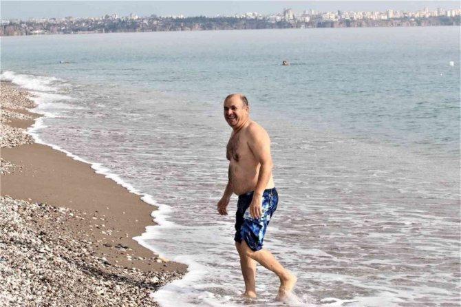 Denize giren vatandaşların görüntüsü yaz günlerini aratmadı. Antalya'ya Çorum'dan tatile gelerek denize giren Hasan Kalender, "Bugün günlerden 18 Aralık 2021. Antalya'ya gelmişken denize girmek istedim. Deniz suyu da gayet güzel. Çorum'da hava kar yağıyor. Çok soğuk. Burada Allah güzel yer vermiş. 4 mevsim yaşanabiliyor. Yükseklere çıkınca kar sahilde de denize giriliyor. Buraya geldiğin için çok mutluyum. Memlekete geri döneceğim" sözlerine yer verdi.