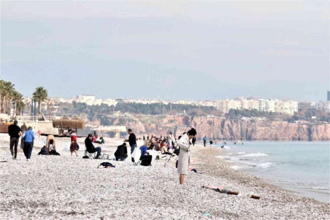 Meteoroloji Genel Müdürlüğü ülke genelinde beklenen kar yağışı ile ilgili uyarılarda bulunurken turizm kenti Antalya'nın dünyaca ünlü Konyaaltı sahilinde çekilen görüntüler yaz günlerini aratmadı. Hava sıcaklığının 16 derece, deniz suyu sıcaklığını 19 derece ölçüldüğü kentte güneşli havayı ve hafta sonunu fırsat bilen yerli ve yabancı vatandaşlar sahile koştu. Bazı vatandaşlar deniz suyunun da sıcak olmasını değerlendirerek yüzdü. Bazıları ise kitabını okuyarak güneşlenmeyi tercih etti. Birçok vatandaş ise sahilde yürüdüğü ve arkadaşları sohbet etti.