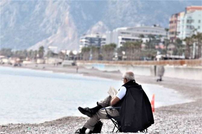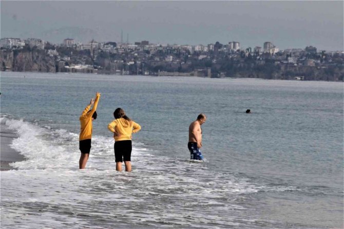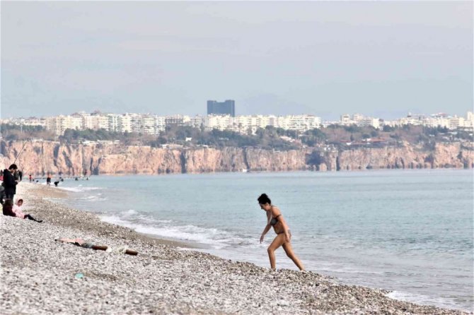 Türkiye'nin birçok ilinde kar yağışı beklenirken turizm kenti Antalya'da dünyaca ünlü sahilde çekilen görüntüler yaz günlerini aratmadı. Güneşli havayı fırsat bilen vatandaşlar denize girerek, sahilde kitap okuyup güneşledi.
