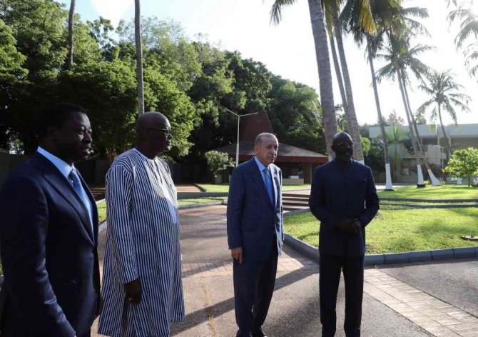 Cumhurbaşkanı Recep Tayyip Erdoğan, Afrika turunun ikinci durağı Togo'da Cumhurbaşkanı Faure Essozimma Gnassingbe ile baş başa ve heyetler arası görüşmelerinin ardından ortak basın toplantısı düzenledi. Toplantının ardından Cumhurbaşkanı Erdoğan, Togo Cumhurbaşkanı Gnassingbe, Burkina Faso Devlet Başkanı Christian Kabore ve Liberya Devlet Başkanı George Manneh Weah ile bir araya geldi.