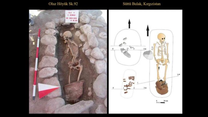 Türkiye'deki Oluz Höyük kazılarında bulunan bin yıllık Türk mezarlığı ile Kırgızistan'daki Suttuu-Bulak mezarlığında ölülerin aynı geleneklerle...