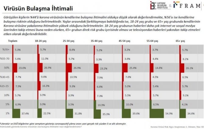 "Yüzde 44’ü Korona virüsünün kendilerine bulaşma ihtimalini oldukça düşük olarak değerlendirmekte"