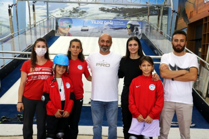 Elvin Yuvacı adlı sporcu da yaz ayında kayak antrenmanı yapabilmenin avantaj olduğunu söyleyerek, "Yaklaşık 3 yıldır kayak yapıyorum. Burada simülasyon merkezinde yaz aylarında kayıyoruz buda bize rakiplerimiz karşısında çok büyük avantaj sağlıyor, kışında Yıldız Dağında kayıyoruz. Geçen sene yarışlara gittik, bu sene de gideceğiz" ifadelerini kullandı.