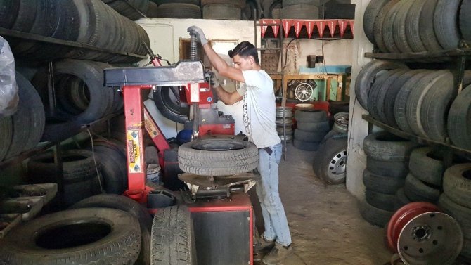 Lastik tamircisi olarak çalışıyor